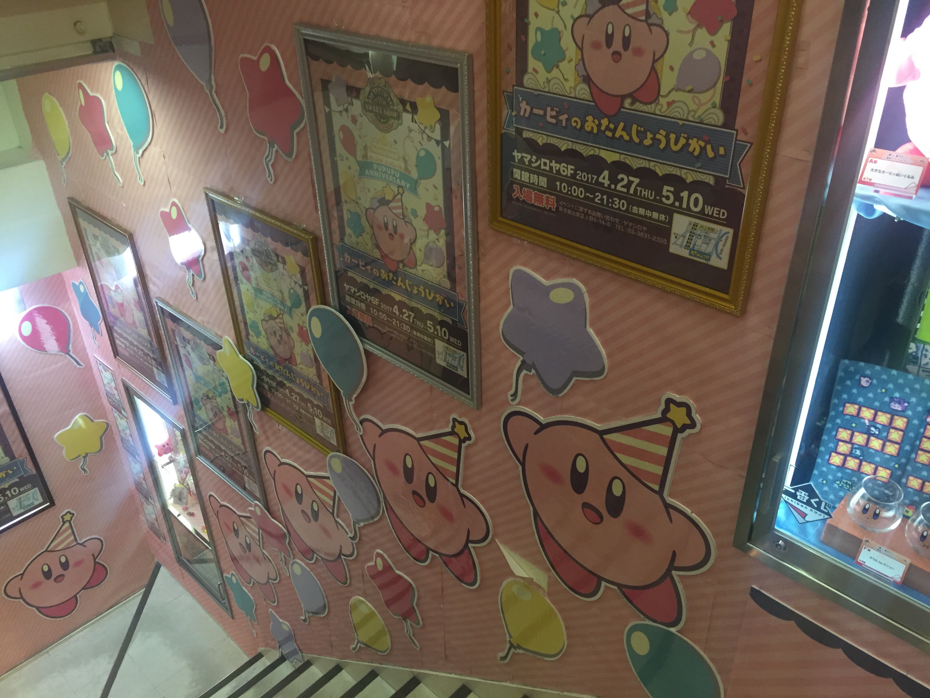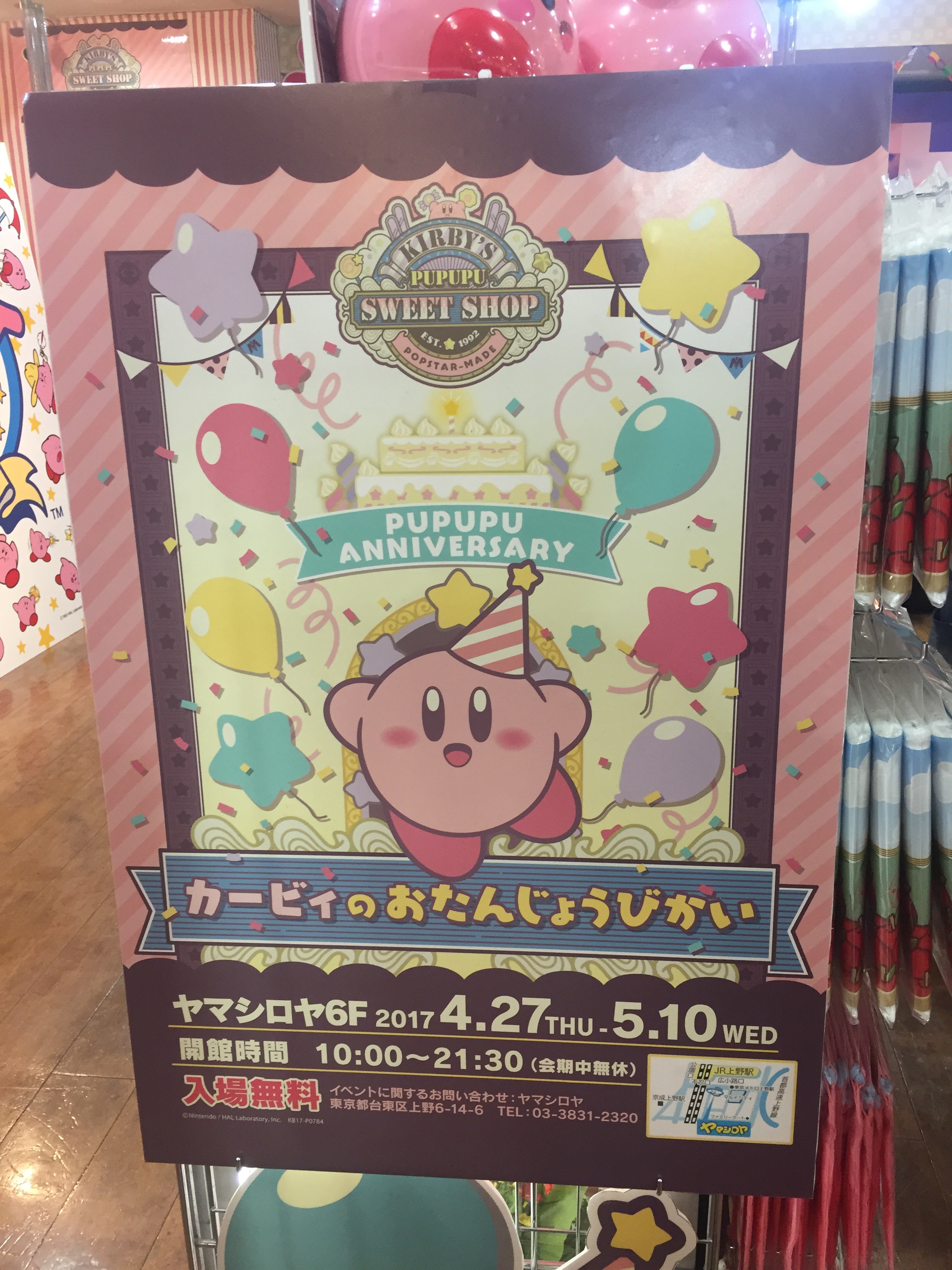 Tokyo started two Kirby events today- one in Ueno’s Yamashiroya toy store celebrating the Nintendo mascots 25th birthday, complete with cake and message board. The other was an annual, train- centric special event in a ‘pop up store’ in Tokyo station’s character street. Queues at both events started at least 2 hours before opening, with waiting times in Tokyo exceeding 4 hours by midday. The events run through til early May.